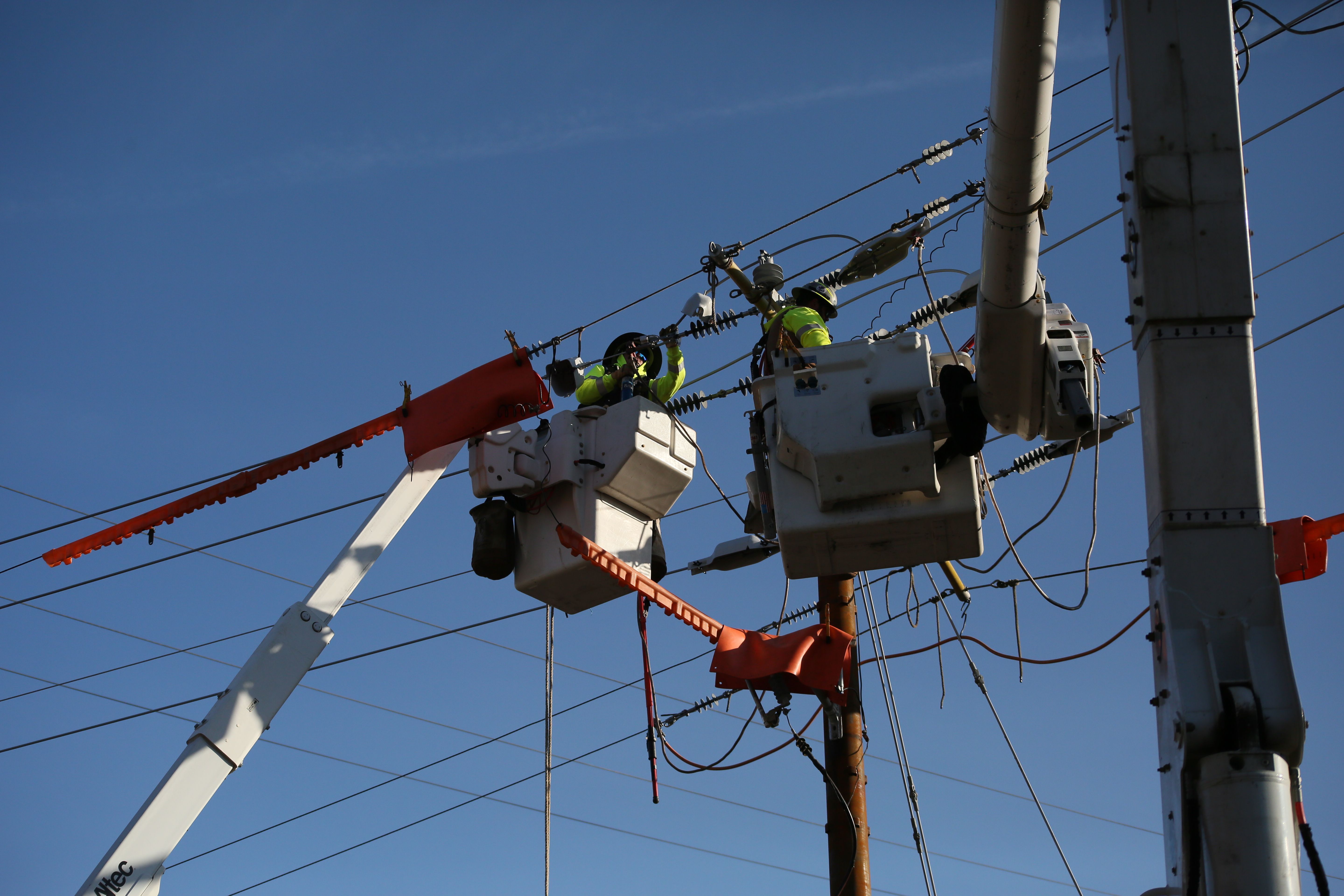 Crews inspect power lines and equipment during restoration. Crews look for damage to equipment and potential interference on power lines.